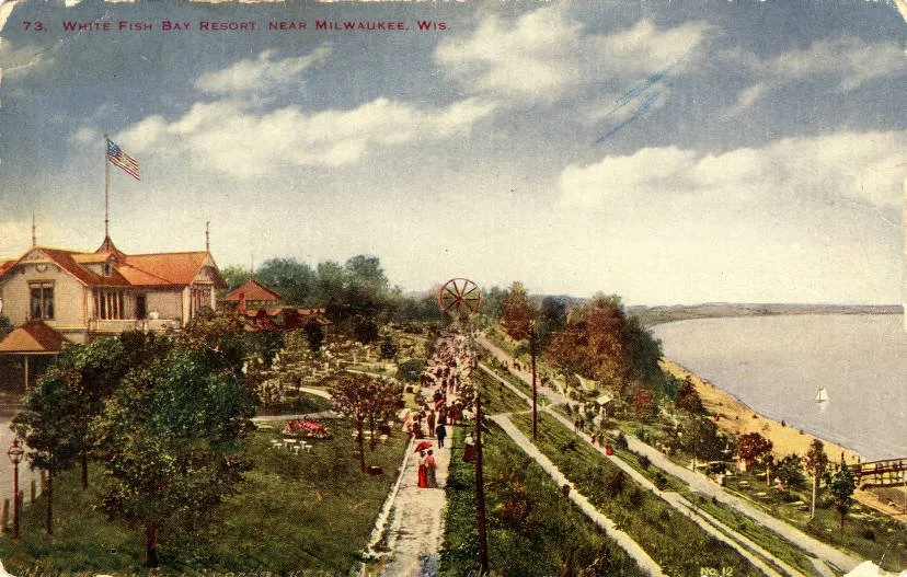 The resort itself tells a remarkable story. Captain Frederick Pabst, owner of the Pabst Brewing Company, invested $30,000 in 1889 to create the Whitefish Bay Resort, complete with hotel, restaurant, beer garden, bandshell, Ferris wheel, and carousel. The resort attracted up to 15,000 visitors on weekends and even hosted President Theodore Roosevelt. When it closed in 1914, the 17 lakefront lots were developed into luxury residences, including the Herman Uihlein Mansion (1919), built for a son of the Joseph Schlitz Brewing Company president.